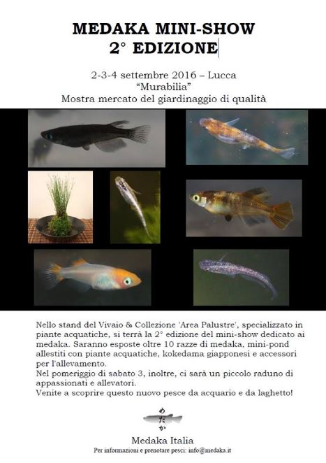 Im Rahmen einer Austellung für Pflanzen & Gärten wird Medaka Iatlien eine kleine Info Veranstaltung mit diversen Zuchtformen, die in Italien vorhanden sind durchführen. Gleichzeitig wird dieser Event ein Treffpunkt der Medaka Fangemeinde in Italien sein. Sicher eine tolle Veranstaltung, bei der ich leider nicht dabei sein kann. Organisator ist Roberto Pelligrini, wohl der erste Medaka Züchter in Italien überhaupt. Zu sehen werden sein: