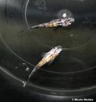 Wenn ich mir die asiatische Medaka Szene aktuell anschaue geht der Trend anscheinend oft zu Züchtungen der „Lame Gruppe“ Auch in Europa finden sich immer mehr Fans dieser mit den pregnanten Lame Glanz Schuppen versehenen Zuchtformen. Egal ob es sich dabei um einfarbige Linien oder mehrfarbige Tiere handelt. Der Lame Effekt hat seinen Reiz. Vor kurzem hat Mizuho Medaka die unten gezeigte Zuchtlinie „Asuka Sanshoku Lame“ auf Facebook vorgestellt und angeboten. Wie bei den meisten mehrfarbigen Zuchtlinien dürfte es sich hier um keinen stabilen Stamm was den Farbanteil betrifft handeln. Aber sicher interessante Fische die ein echter Eye catcher sein können.
